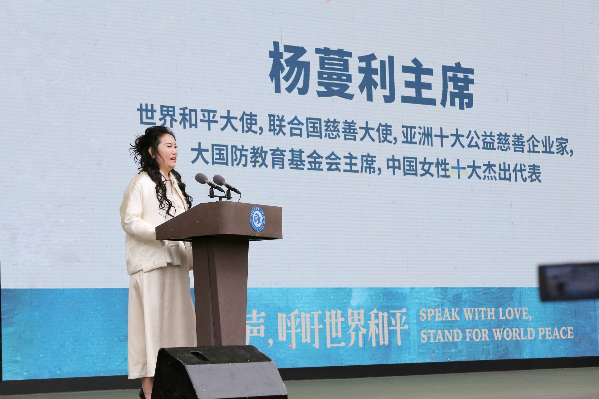 升旗儀式后,嘉賓依次致辭。楊蔓利分享了參與和平公益的感悟,對(duì)活動(dòng)意義給予肯定,并向青少年寄語(yǔ)。