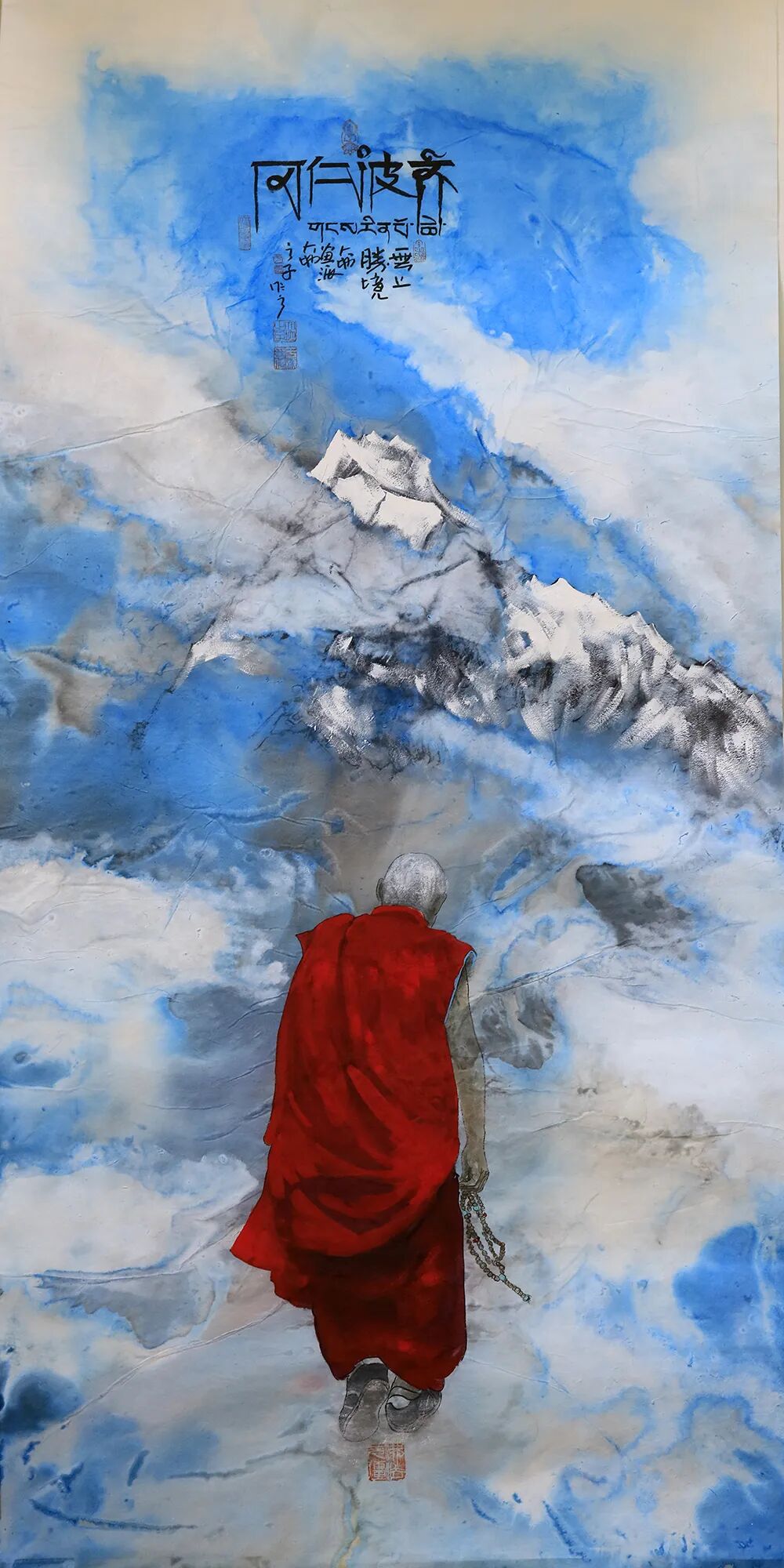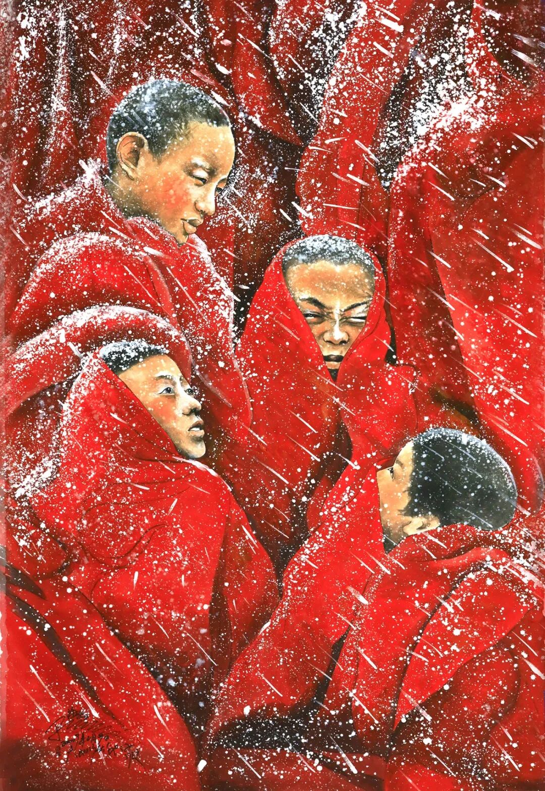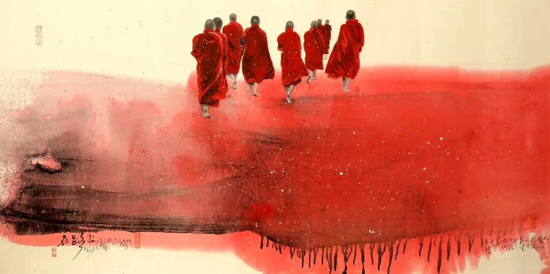 - 紅衣喇嘛系列:以厚彩厚重紅衣喇嘛背影為主題,繪生命密宗修行者的堅(jiān)韌,傳遞“高原極寒問佛”的意境;