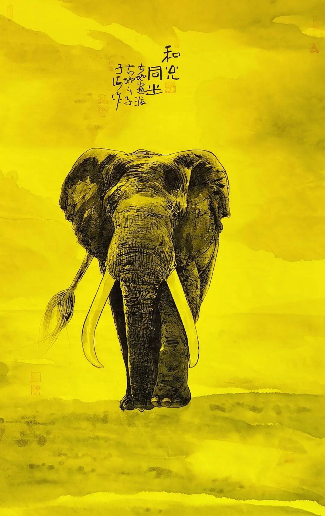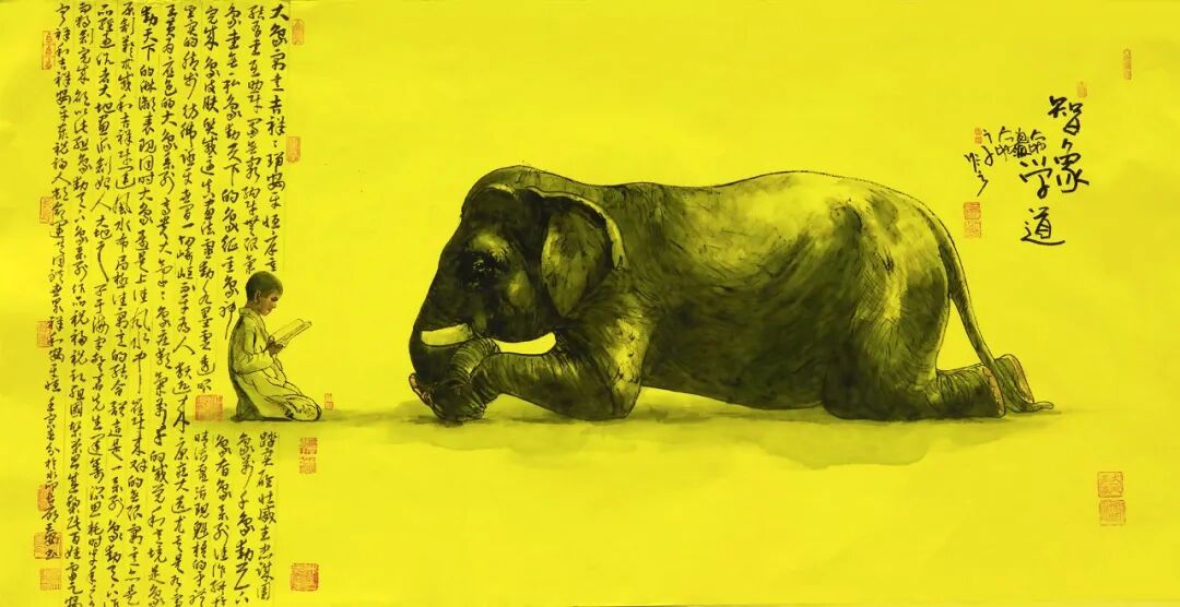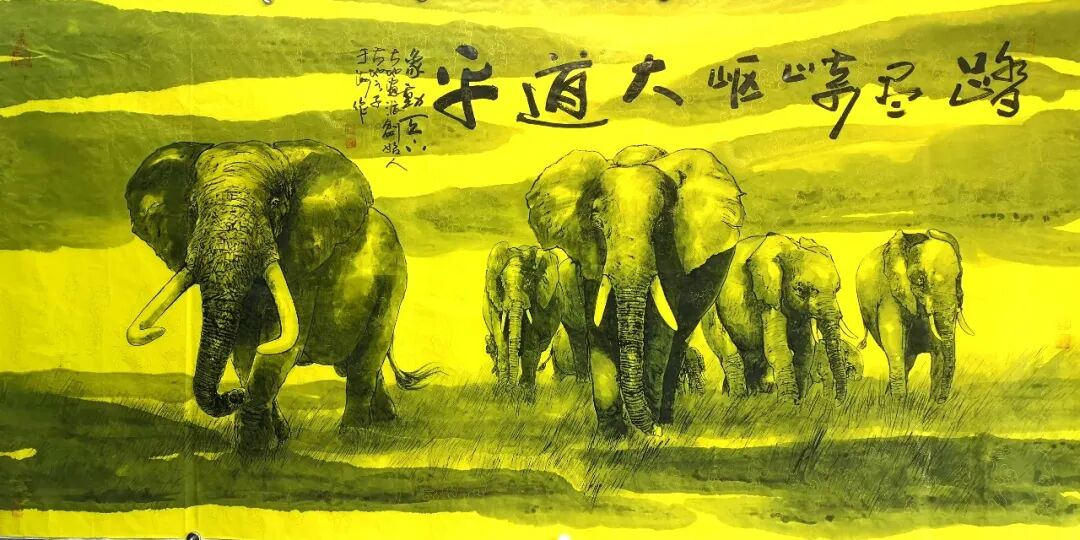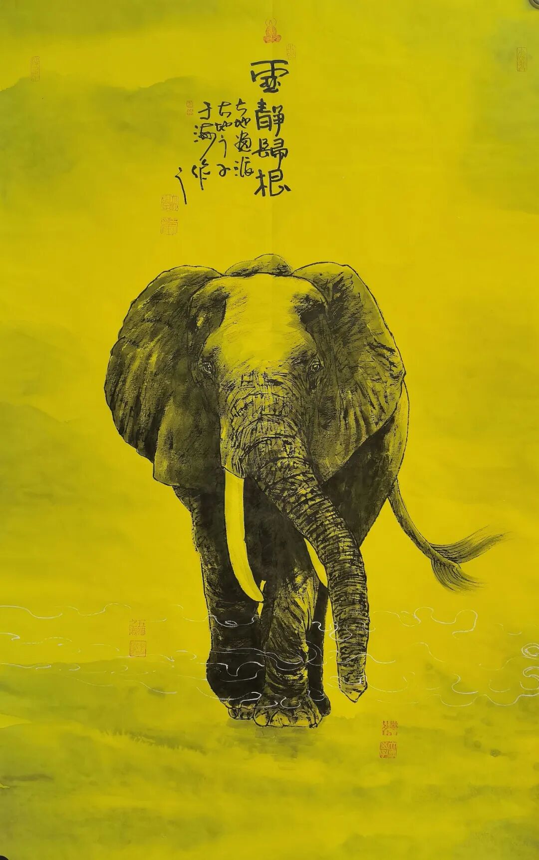 - 大象系列:執(zhí)《道德經(jīng)》“執(zhí)大象,天下往”之哲思,以厚重筆墨承載宇宙大道的生生不息和道運(yùn)昌??;