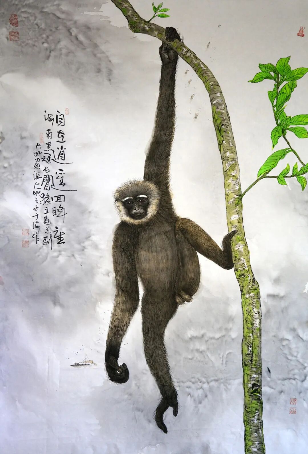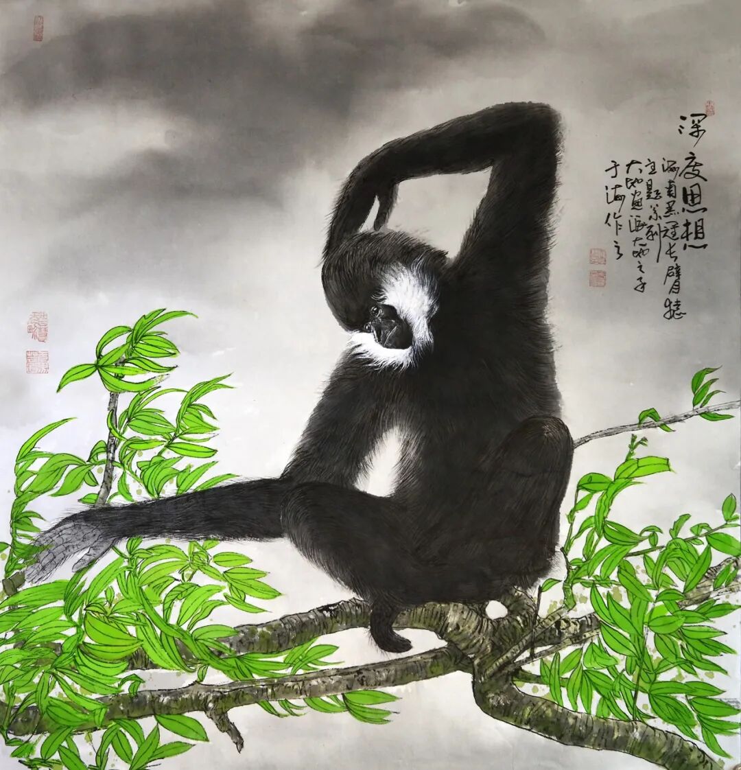- 長臂猿靈猿系列:以靈動(dòng)筆觸,寫自然生機(jī),兩岸猿聲啼不住,輕舟已過萬重山的古人詩詞中的逍遙自在的生命意境;