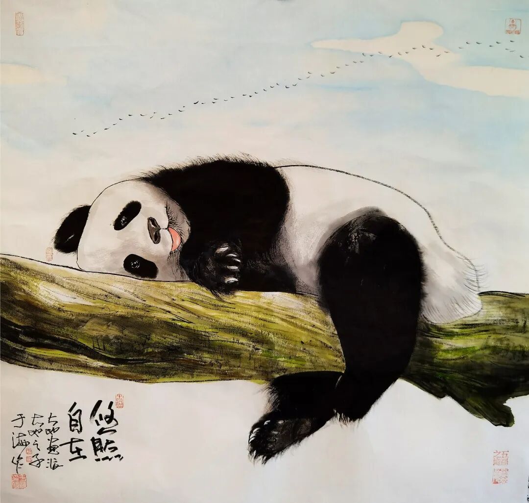 - 熊貓系列:以區(qū)別于其他人畫國寶大熊貓的工筆之法而以獨(dú)有的工意傳神之境描繪大熊貓的憨態(tài)之形,靈動(dòng)之魂,融東方禪意,展現(xiàn)萬物和諧的生命本真;