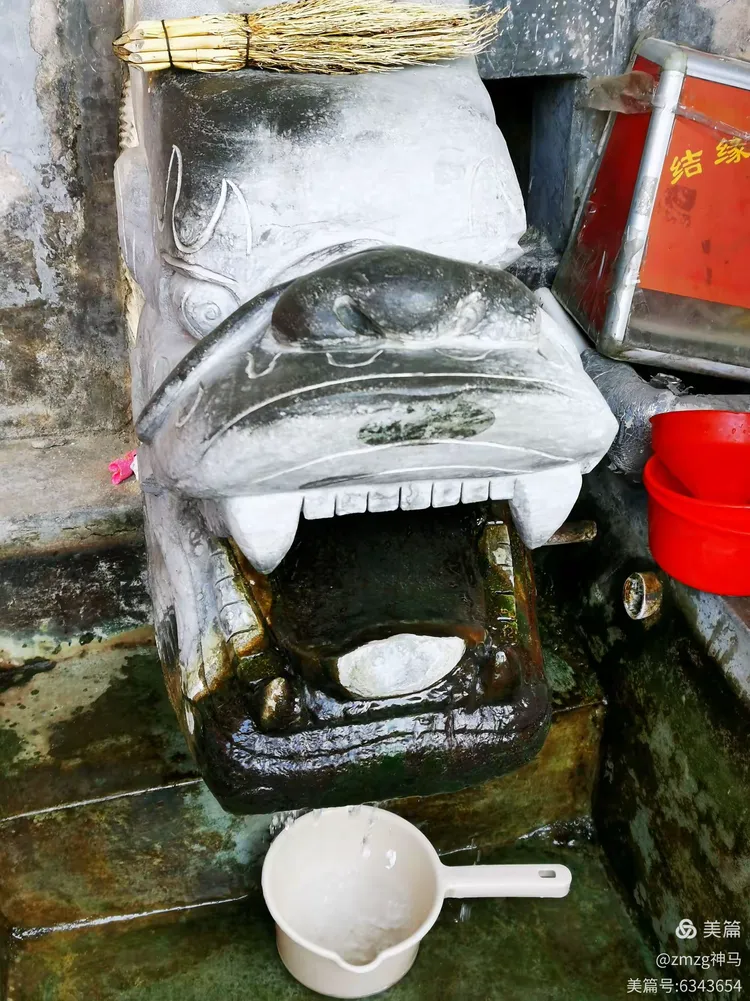 這一層有一處泉水。雖然是冬季枯水季節(jié),但是山泉水還能在龍嘴里緩緩流出。這是雙泉庵中兩個泉子之一。另一個被引至寺廟下面去了。