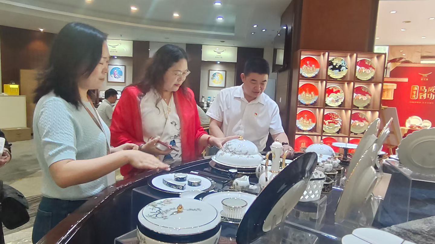 交流中,國瓷永豐源盧邊芳書記介紹,國瓷永豐源以黨建為引領(lǐng),深耕陶瓷技藝創(chuàng)新20余年,研發(fā)新畫面、配方超2萬個(gè),攻克浮雕白、高溫金等行業(yè)難題,完成國家任務(wù)4項(xiàng)、國宴任務(wù)13項(xiàng),讓中國陶瓷重新閃耀國際舞臺 。