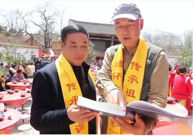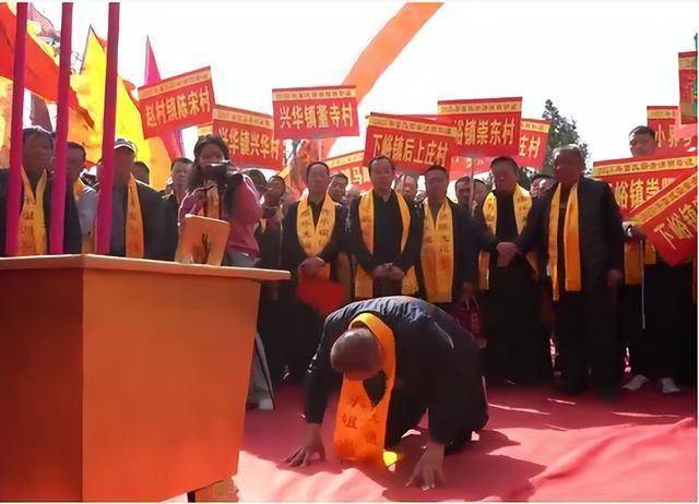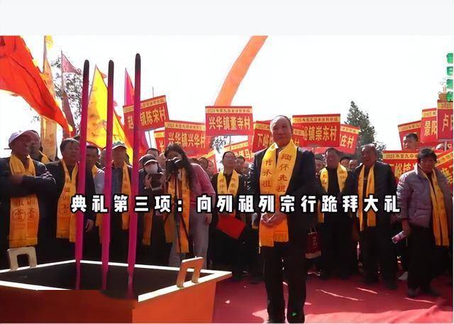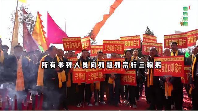 由族長代表族人給列祖列宗敬獻(xiàn)貢品,行三跪九拜大禮。一跪三叩首:光祖恩澤,山高水長;