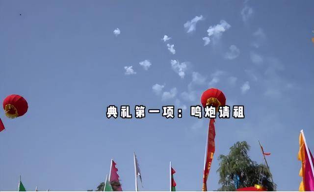坡頭原祭祖典禮第一項(xiàng):鳴炮恭迎列祖列宗。