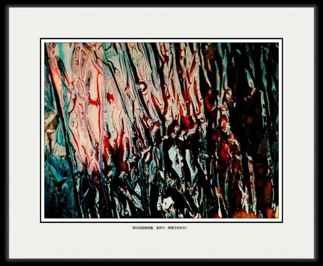 觀者觸摸著畫面中凸起的肌理,看著紅與藍(lán)黑的交織,聽著線條流動的無聲敘事,忽然明白了譚延桐的反問,進(jìn)程不是無代價(jià)的前進(jìn),鮮血不是無意義的犧牲,它們是生命的本質(zhì),是存在的證據(jù)。這幅畫不是描繪創(chuàng)傷,而是禮贊生命,它用肌理的痛告訴我們,進(jìn)程的難是真實(shí)的;用色彩的熱告訴我們,生命的活是珍貴的;用線條的曲告訴我們,成長的彎是必然的。所謂進(jìn)程,不過是生命用鮮血寫成的詩,每一道肌理都是詩行,每一抹紅色都是韻腳,每一次斷裂都是換行。而鮮血不是代價(jià),而是生命的印章,蓋在進(jìn)程的每一頁上,證明我們曾真實(shí)地活過、掙扎過、前進(jìn)過。