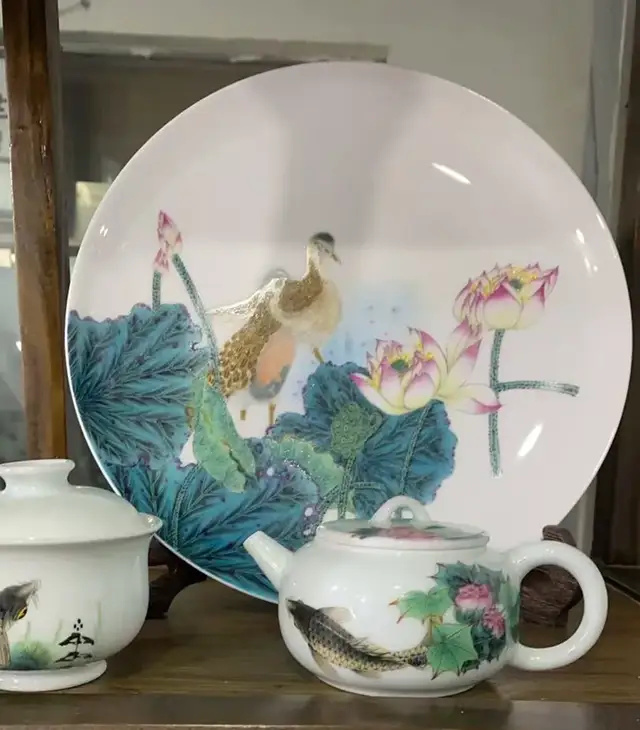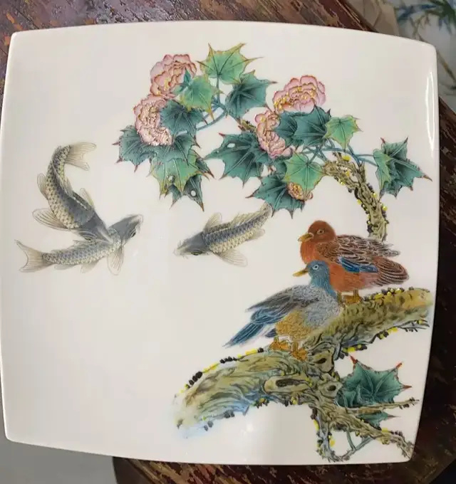 本人擅長陶瓷釉上釉下花鳥魚蟲走獸,所創(chuàng)作的瓷上花鳥,運(yùn)筆灑脫、墨色淋漓、栩栩如生、意境悠遠(yuǎn)盡顯大家風(fēng)范。尤其是所畫魚藻,筆墨嫻熟、魚游靈動、水藻飄逸、形神兼?zhèn)洹⒖胺Q佳作。