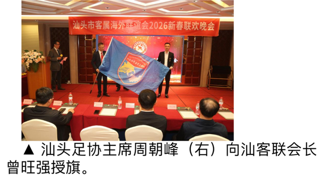 3月28日,汕頭市客屬海外聯(lián)誼會(以下簡稱 “汕客聯(lián)”)新春聯(lián)歡會隆重舉行 “汕頭僑界客屬足球隊” 授旗儀式。