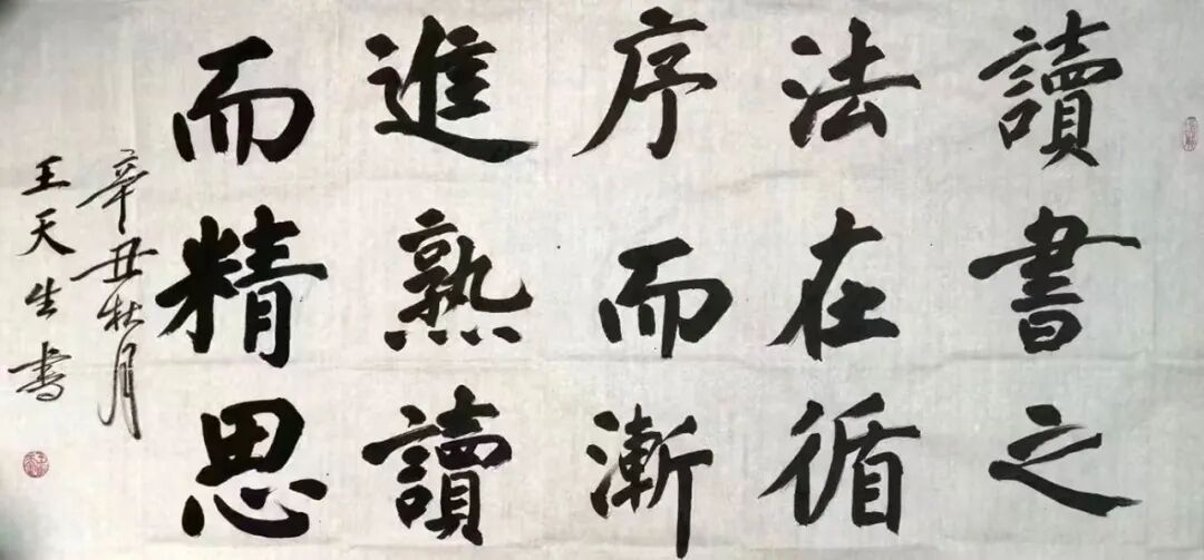 其作品入編《2008北京奧運(yùn)書畫拍賣作品專輯》《“書圣盃”中國(guó)少字書法雅集》《中國(guó)書畫名家精品集》《非物質(zhì)文化遺產(chǎn)國(guó)禮特供書畫家》《中國(guó)一綫書法家》《世界藝術(shù)典范》等多部與范曾、歐陽(yáng)中石、沈鵬等老師合作出版的合集,還出版有《中國(guó)一綫書法家(2018-2019年度中國(guó)最具影響力一綫藝術(shù)家)王天生一綫大家》(個(gè)人專集)。個(gè)人業(yè)勣入編《第四屆中華脊梁——人民共和國(guó)杰出人物大典》《輝煌中國(guó)六十年》《中華頌》《世界人物辭?!返热宋镛o書?!耙倭|方” 作品被人民大會(huì)堂收藏,“中國(guó)夢(mèng)” 作品被中央四臺(tái)向世界傳播使用,所鈔寫的《論語(yǔ)》《孟子》《道德經(jīng)》《孫子兵法》小楷長(zhǎng)卷作品被臺(tái)灣連戰(zhàn)收藏,其他作品《金剛經(jīng)》、《心經(jīng)》、《增廣賢文》、《孝經(jīng)》、《二十四孝》、巜弟子規(guī)》、《三字經(jīng)》、《百家姓》、《千字文》等還被日本、韓國(guó)、上海世博會(huì), 西柏坡、狼牙山等多處收藏,使吾古老華夏燦爛悠久之傳統(tǒng)文化傳徧全球并光照宇宙。