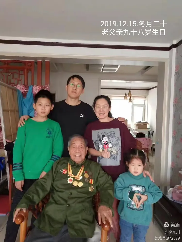 ? ? ? ?2018年97歲的老父親與孫子李京澤孫媳張媛、重孫子李相言重孫女李玟希在一起,享受著天倫之樂(lè)。