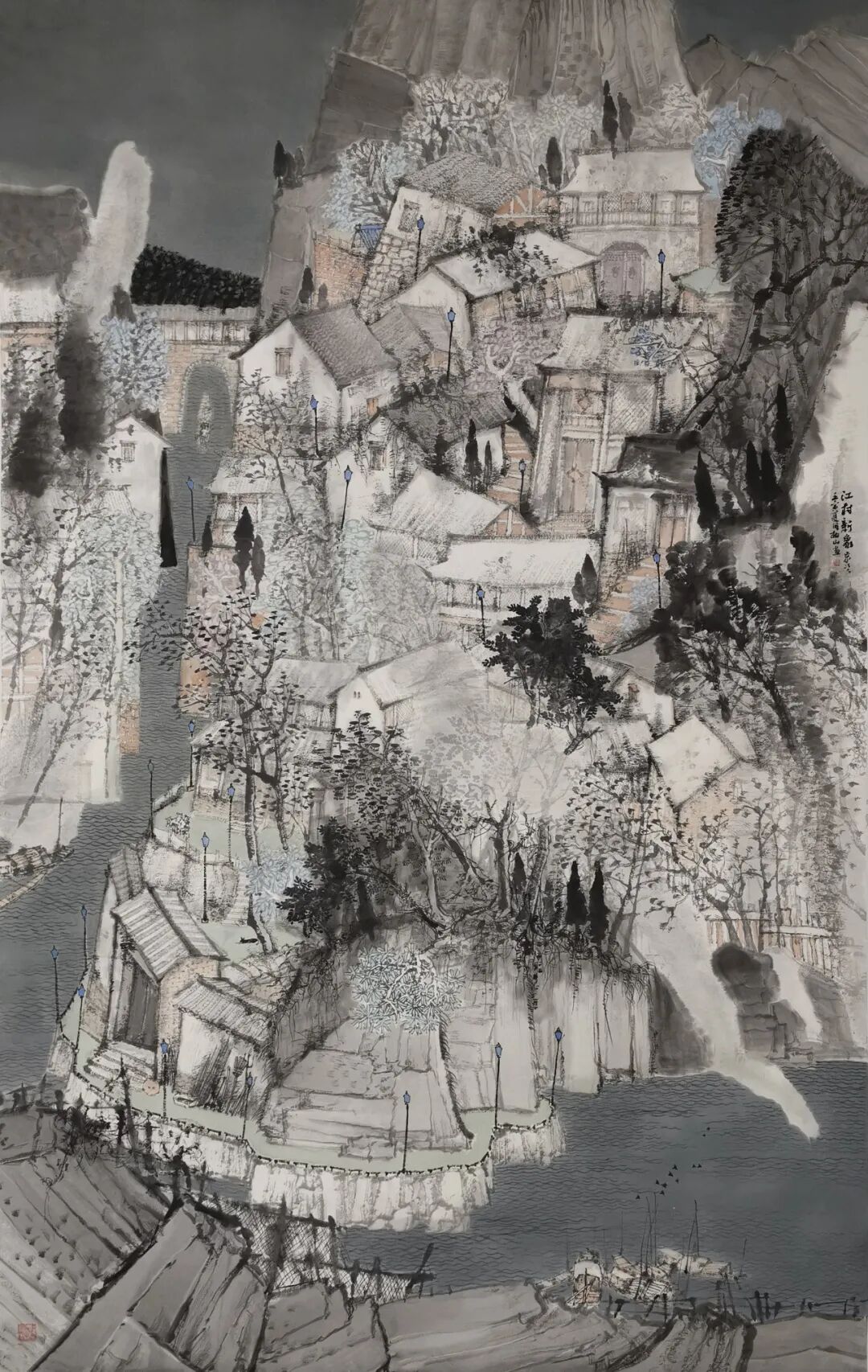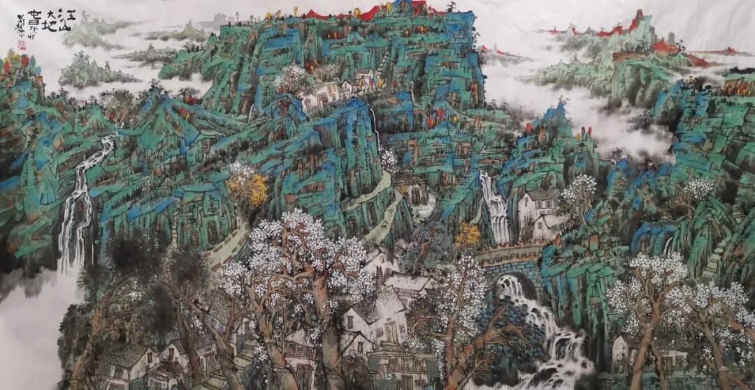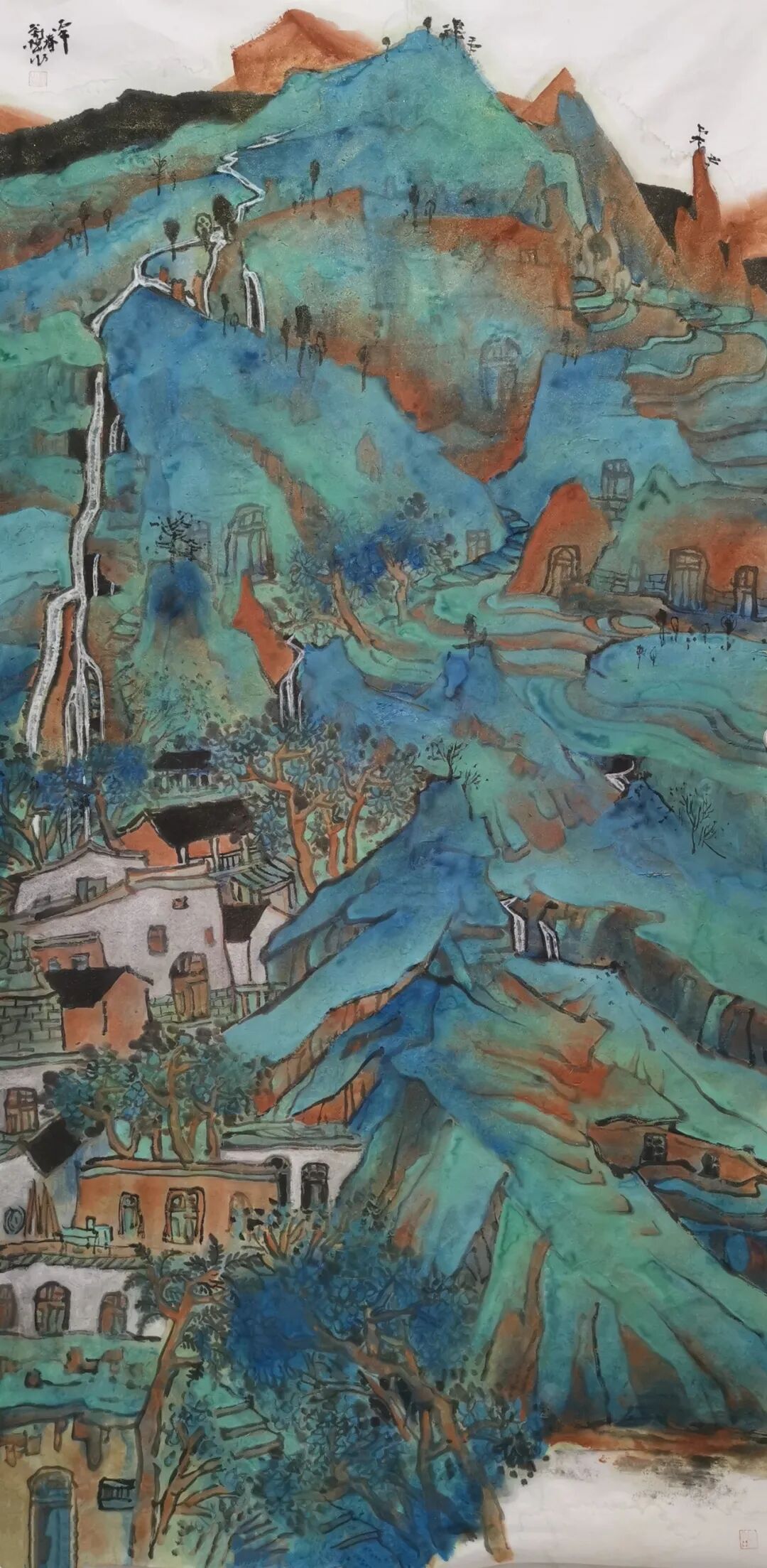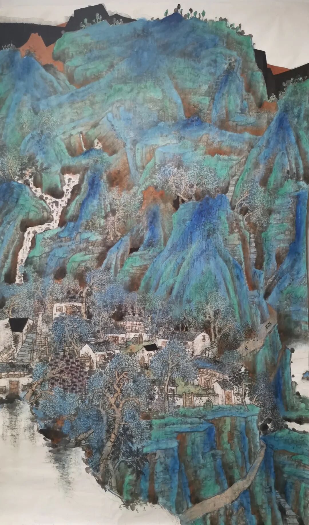 2022年,中國畫山水作品《江村新象》入選中國美術(shù)家協(xié)會(huì)主辦的2022“江山如此多嬌”中國山水畫作品展覽。