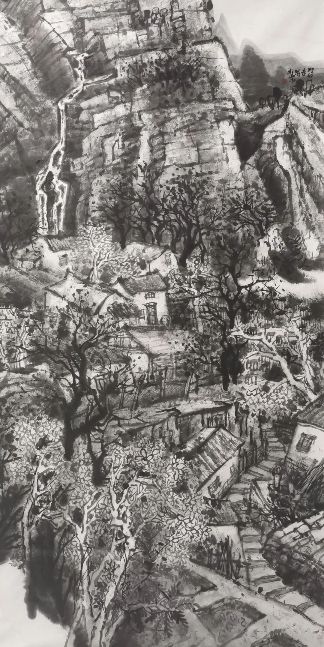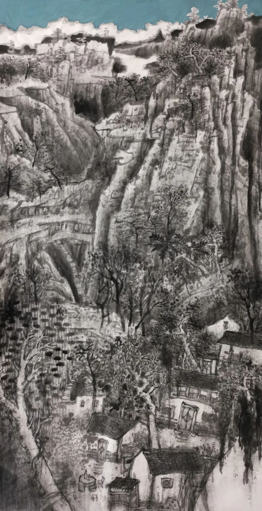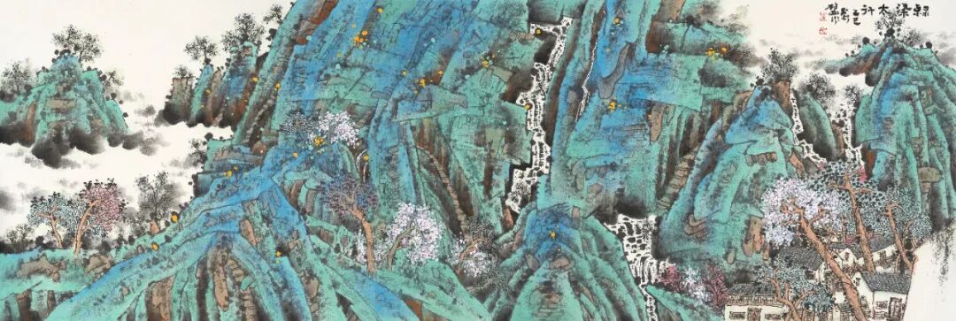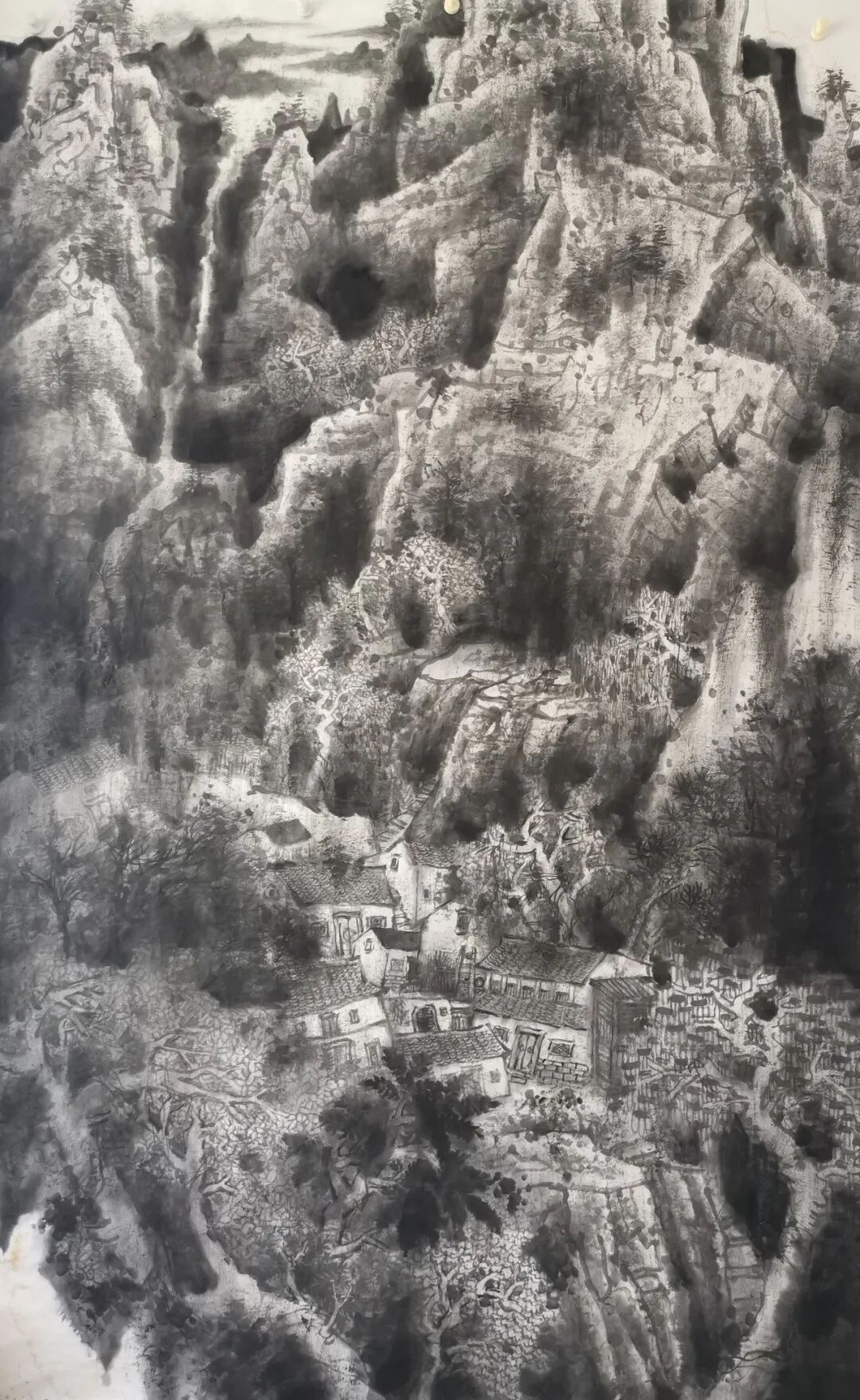 2022年,中國畫山水作品《江村新象》入選中國美術(shù)家協(xié)會(huì)主辦的2022“江山如此多嬌”中國山水畫作品展覽。