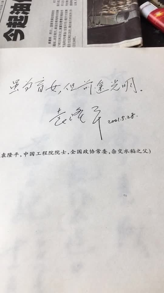 十八年前袁隆平院士曾為全球首位盲童作家袁靚出書欣然題詞:雖為盲女,但前途光明。