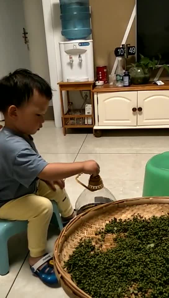 二歲的寶寶泡花椒油,不小心弄灑,自己拾起來(lái)